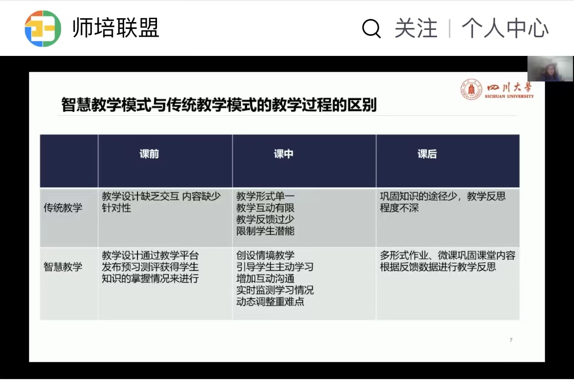 教育技术和教学课件是课堂教学的催化剂和助推器。来自四川大学的张露露分享了智慧教学设计和教学技术的实施。智慧教学依托智能化的教学场景和人性化的教学设计,全程关注教学过程学生的反馈和体验,让学生转“知”成“慧”,主动思考,运用智慧发现问题、分析问题并解决问题。华南师范大学的赖国雄以疫情期间的“停课不停学”为背景,分析了信息化技术对教学的支持和促进作用,介绍了“短视频+教育”的探索实践。