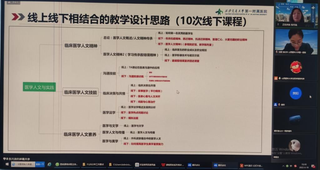 两位专家以课程思政的时代意义开篇,结合自身丰富的课程思政建设与教学实践经历,分别从课程思政教学设计和示范课建设、课程思政案例库建设和运用等方面分享了课程思政建设和实施层面卓有成效的新探索和新实践。张月浪教授以“如盐与水”的比喻生动说明如何将思政元素全方位自然融入医学课程的设计、教学和评价中,提出了“定”、“挖”、“筛”、“思”、“成”的课程思政“五部曲”,将价值塑造和医学人文精神、人文技能、人文素养深度融合,培养党和人民信赖的有温度的“五爱”医生,实现立德树人的根本任务。魏琳教授在培训中指出课程建设是课程思政的主战场,国家和社会对医学人才的培养目标是课程思政的建设方向,随后以《医学伦理学》中的课程思政案例库建设为例,解读了医学课程中课程思政建设的核心要求与分层次目标,通过整体规划将案例库中的“思政点”整合为“思政线”和“思政面”,体现出课程思政的广度、深度、温度和热度,进而服务于医学专业课程教学。