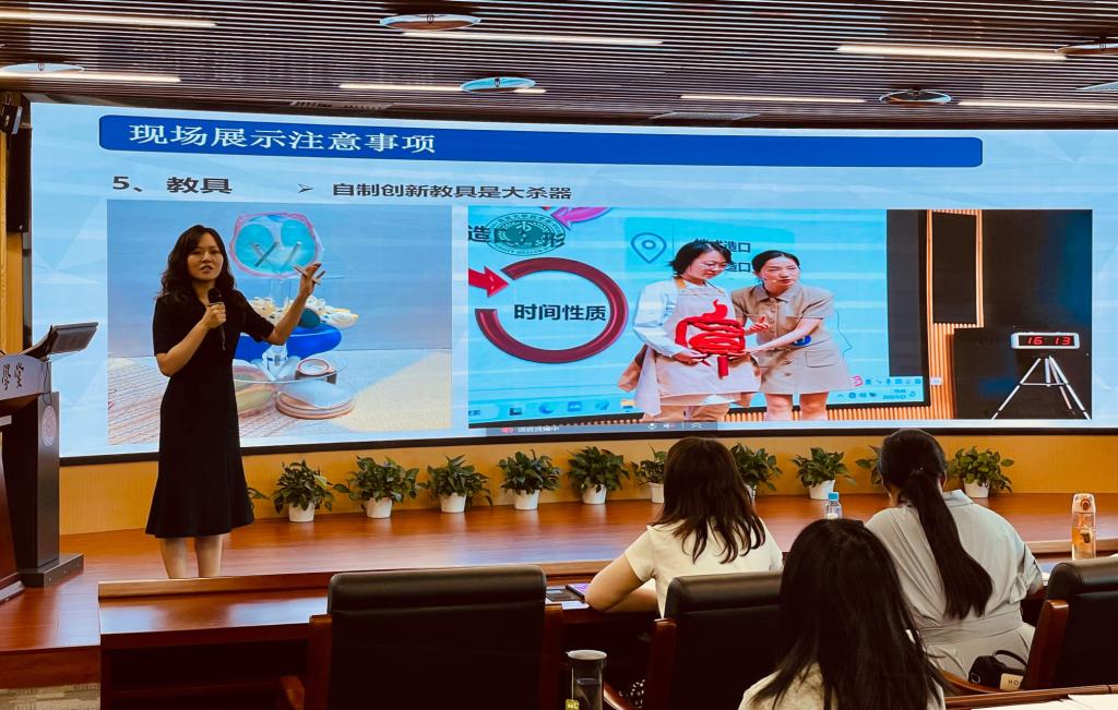 7月9日下午,赵一馨老师结合自身参加第六届全国高校青年教师教学竞赛并荣获医科组一等奖的心路历程和参赛案例,向学员们解读了青教赛的赛程赛制和评分细则,重点讲解了课程思政如何融入医学专业课程、多媒体课件的制作规范与提升、参赛选题与难度调整等实用的备赛经验。每一次设计精巧的创新和精益求精的打磨,都是为了让抽象的医学知识更加生动具体,让无形的思政理念更加立体动人。