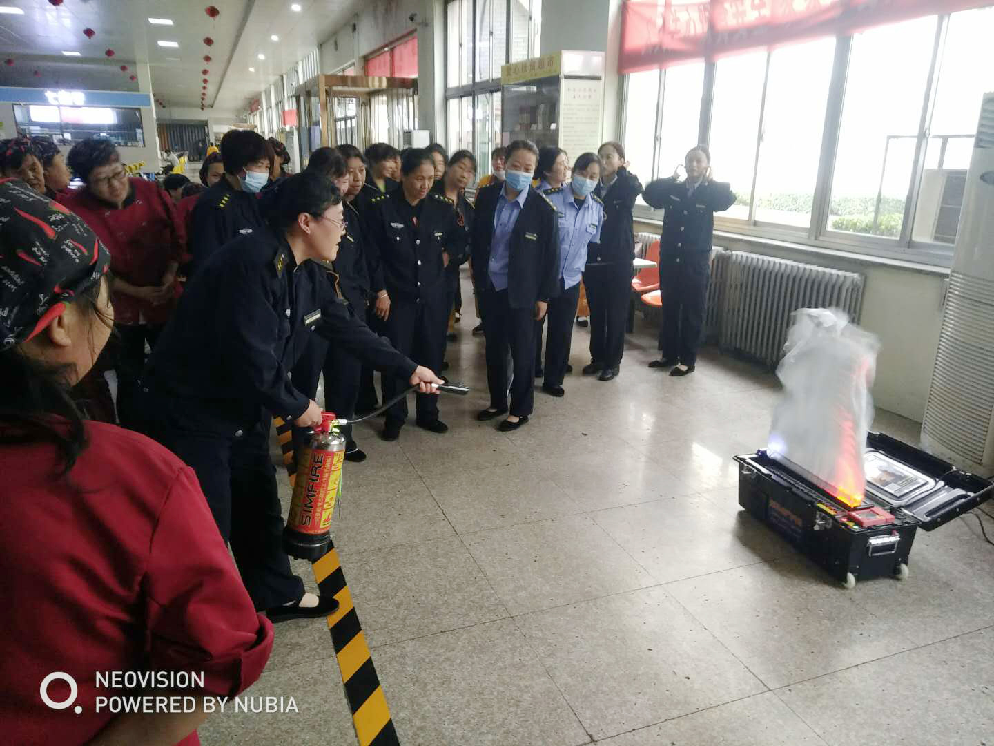 首先,演练负责人韩东红、梁庆刚、郭志峰讲解了有关火灾现场的应急处置方案,灭火器的使用原理以及相关的注意事项,并亲自演练了灭火器的使用方法。在认真听讲及观摩后,教职工亲自体验了现场灭火的过程,面对熊熊燃烧的火堆,教职工们表现得十分沉着,熟练地按照灭火的步骤和方法,将火情迅速扑灭。