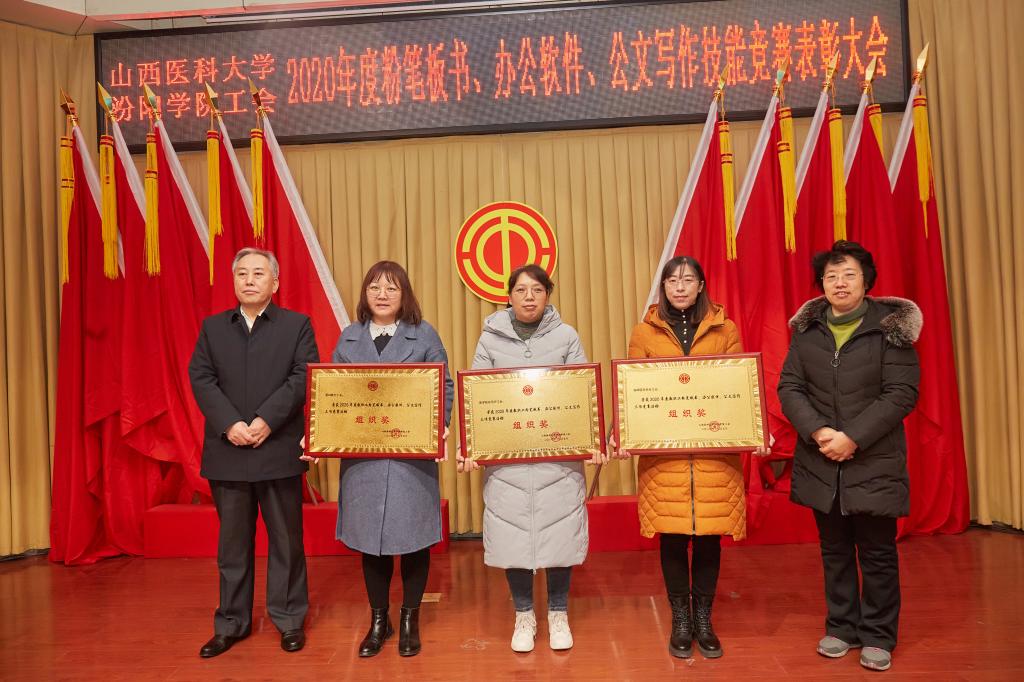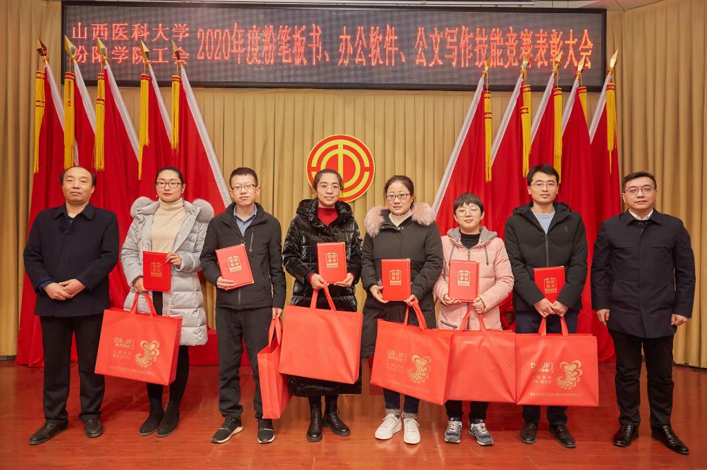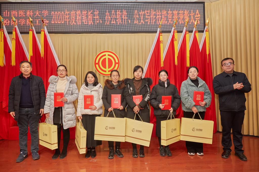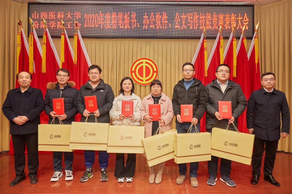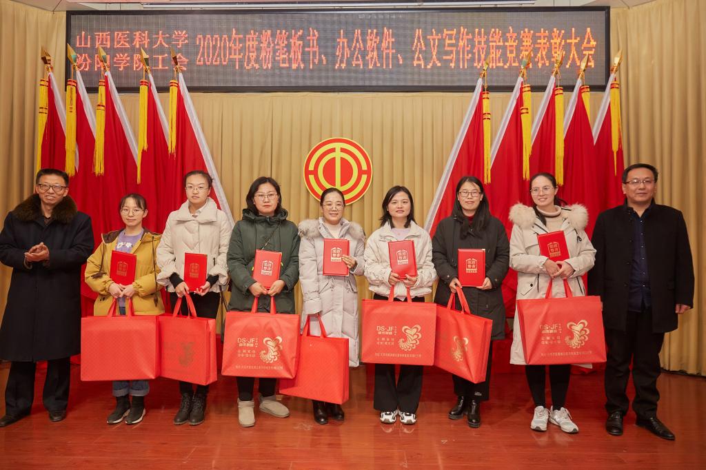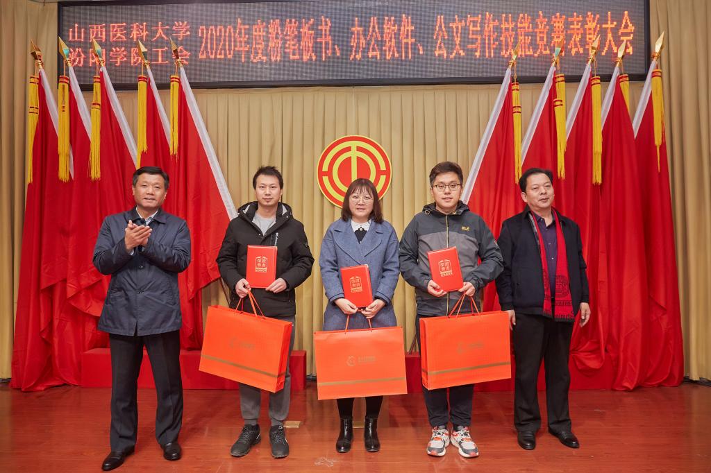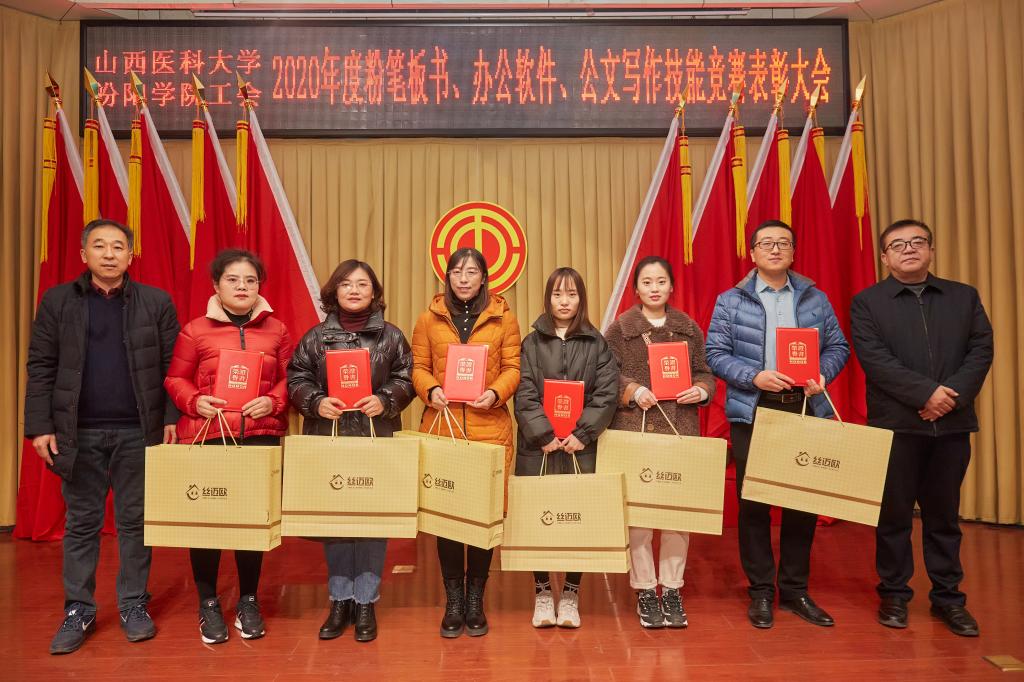 仪式上,党委副书记任云青宣读了《山西医科大学汾阳学院工会关于表彰教职工粉笔板书、办公软件、公文书写竞赛获奖个人和集体的通知》,参加仪式的领导为杜跃、庞蓉、殷林孝等65名获奖选手和临床医学系分工会、医学检验系分工会、图科教分工会3个获奖集体颁奖。获奖代表检验系副主任、分工会主席张晓延发言。