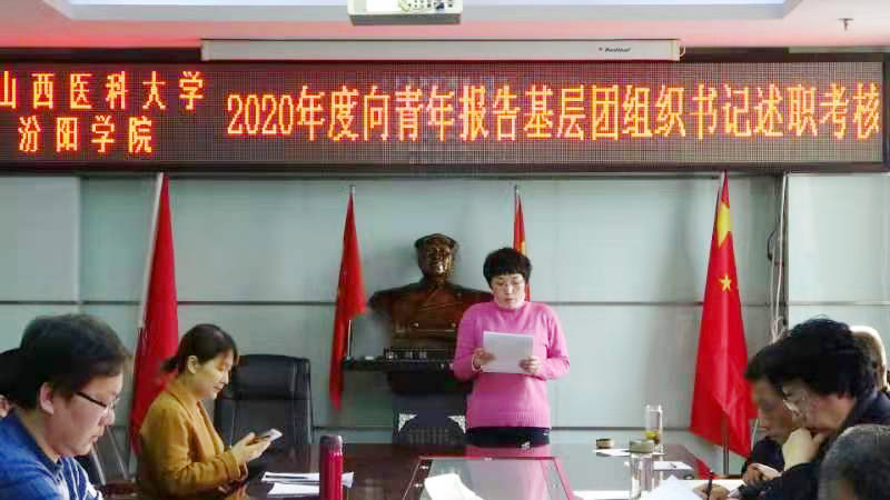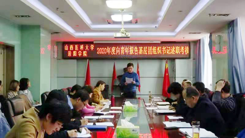 会上,各分团委书记对本级团组织履行职责情况进行述职,客观地总结了成绩、深刻查找了存在的问题,并提出改进措施。在过去一年里,各基层团组织围绕“加强思想政治教育,坚定团员理想信念”开展了多项活动,如通过“学习强国”、“三晋先锋”、“青年大学习”等平台,提升全体青年团员的的思想政治素养和道德素质,并通过开展“学习十九届五中全会精神”、“学宪法 讲宪法”、“共青团简介”等主题团日活动,进一步加强正确舆论导向,加强团员政治教育和政治训练。随后,评议考核人员根据实地考核、述职评议和日常掌握情况,对各分团委书记的工作情况按“好、较好、一般、差”等级,形成评价意见。