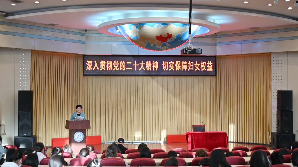 3月8日下午,为了深入贯彻落实党的二十大精神,认真学习宣传贯彻新修订的妇女权益保障法,提高全校女性师生法治意识和依法维护妇女权益的能力,校妇女联合会和校工会女工委,特邀法律专家、“全国青少年普法教育优秀辅导员”张恩柱老师为大家作妇女权益保障法专题讲座,全校女性师生200余人参加,校妇女联合会主席宋维芳主持讲座。