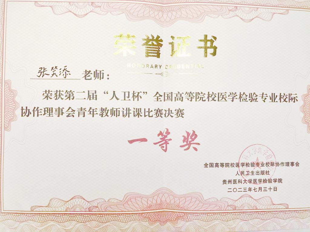 7月27至7月30日,全国高等院校医学检验专业第22次校际协作会暨第二届“人卫杯”医学检验青年教师讲课比赛决赛在贵阳举行,beat365医学检验系教师张笑添、郝广萍入围决赛,以出色的表现分别荣获一等奖。会议由全国高等院校医学检验专业校际协作理事会主办,贵阳医科大学承办。来自上海交通大学医学院、四川大学医学院、重庆医科大学、大连医科大学等全国40余所高等医学院校60余名教师参赛。