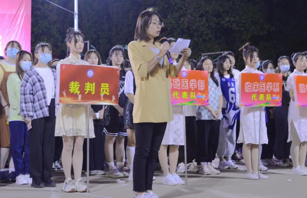 当日晚8时,由校体育运动委员会主办、基础医学部体育教研室承办的校园体育文化节闭幕式在篮球场隆重举办。校党委书记闫敬来,党委副书记、院长孟小平,党委委员、副院长、体育运动委员会主任陈振文,体育运动委员会副主任、基础医学部主任乔海兵以及各系部和相关职能部门负责人出席了闭幕式。