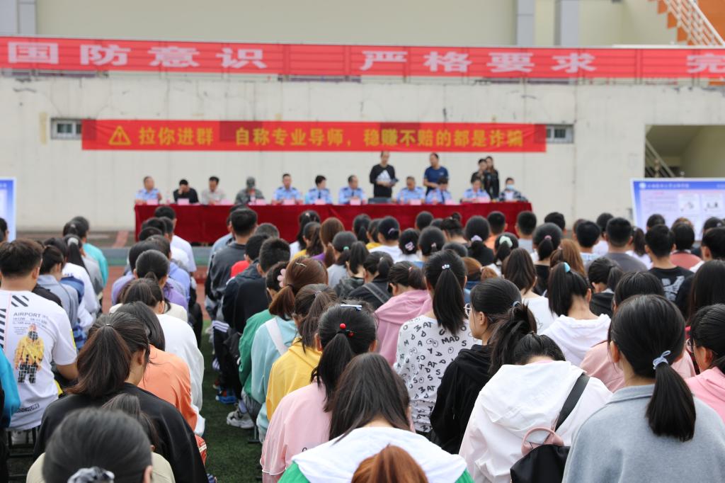 为进一步增强新生自我保护意识,提升对各类诈骗的识别能力,9月6日,新生开学伊始,学校联合汾阳市公安局在学校运动场举办校园防诈骗安全宣传活动。汾阳市公安局副局长李永生,一级警长、反诈集中攻坚辰北战区副总指挥王德生,反诈中心主任李林燕、副主任林姣,宣教科科长任一君,辰北派出所指导员王伟,辰北派出所所长李孝梁,中国人民解放军某部副营长、吕梁市民兵综合救援连连长任志刚,beat365武装部部长李玉明、学生处处长李荣江,2021级全体新生及辅导员、班主任等2500余人参加了活动。