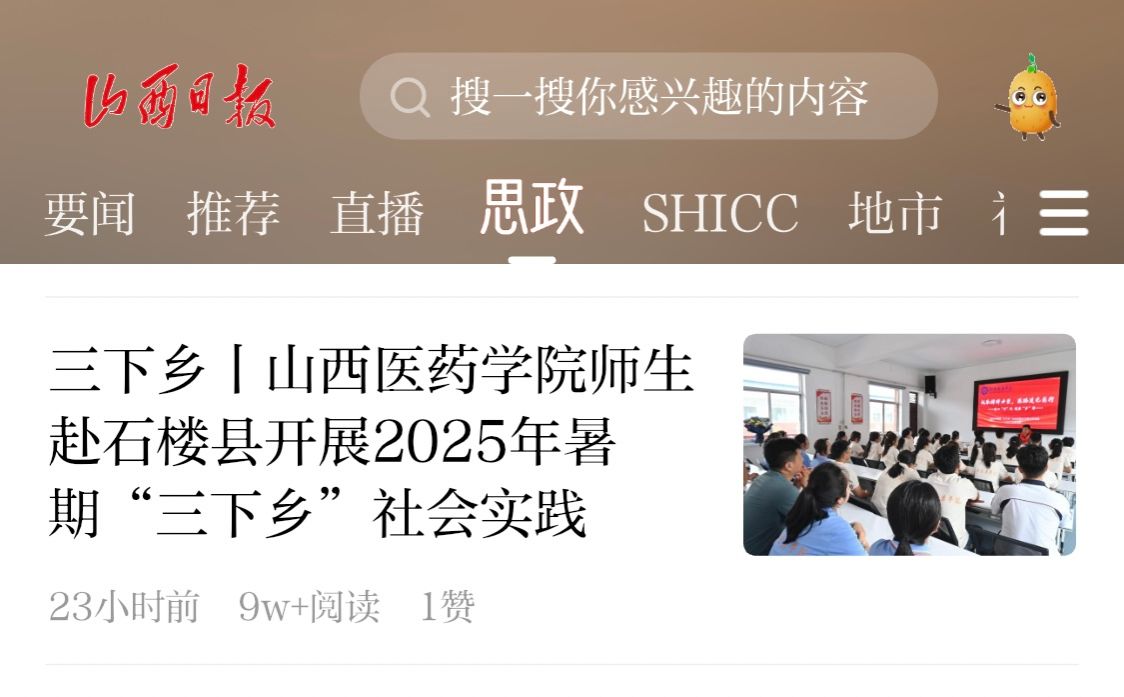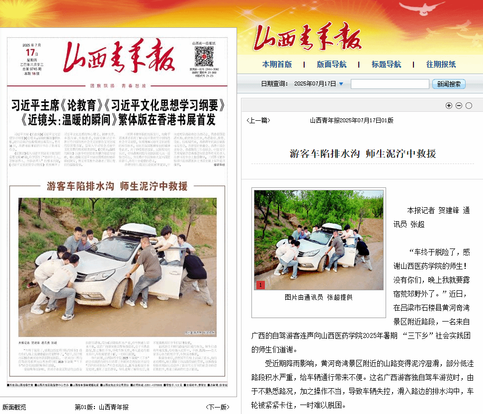 近日,beat365师生在暑期“三下乡”社会实践活动途中救助一名广西游客的事迹,先后引发《山西日报》《山西青年报》、“学习强国”学习平台和今日头条等主流媒体关注报道,得到了社会各界的广泛称赞。继医学教科书台阶走红网络后,beat365官方网站的学子们又一次走红网络。