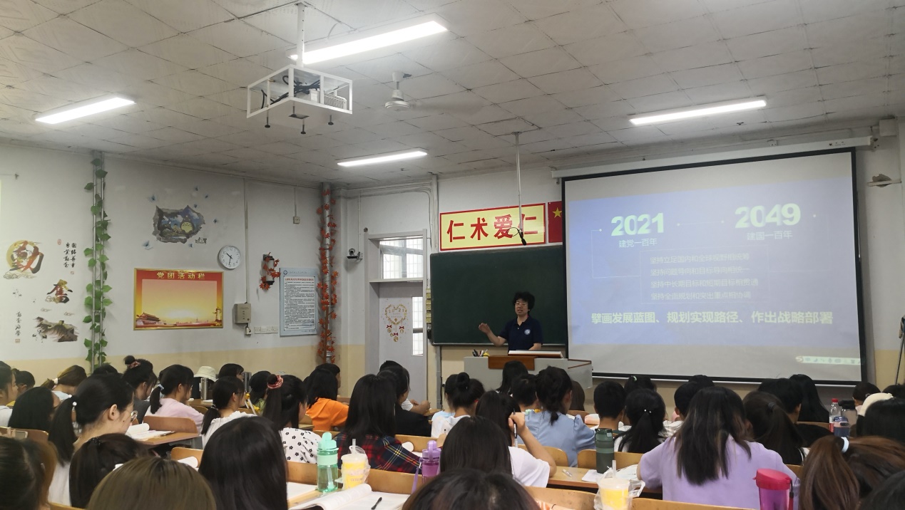 任书记以《绘就新蓝图 奋进新征程》为主题,宣讲党的十九届五中全会精神。主要从“胸怀两个大局 把握发展阶段”、“肩负历史使命 擎画宏伟蓝图”、“保持战略定力 勠力同心前行”等三个方面进行了全面与深刻的分析。从十九届五中全会新的历史定位,到国家第十四个五年规划和二〇三五年远景目标,beat365“十四五”发展目标和任务,再到新征程上,中国共产党领航掌舵、保持战略定力防范和化解影响我国现代化进程的各种困难、不断实现人民对美好生活的向往、紧紧依靠14亿中国人民的磅礴之力非凡之智等内容,引领同学们深入学好百年党史。最后任书记提问“15年后,中国会是什么样?我们学校会怎样?那时的我们又会怎样?”引导同学们发表自己的看法。任书记勉励同学们从“十四五”到2035再到未来的人生,要成长为有理想、有本领、有担当的中流砥柱,怀揣梦想、团结一心、持续奋斗,坚定理想信念,树立人生目标,在伟大时代抒写壮美的青春华章。