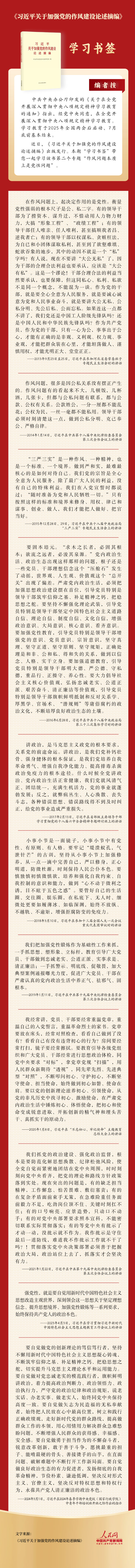 《习近平关于加强党的作风建设论述摘编》 学习书签丨作风问题本质上是党性问题