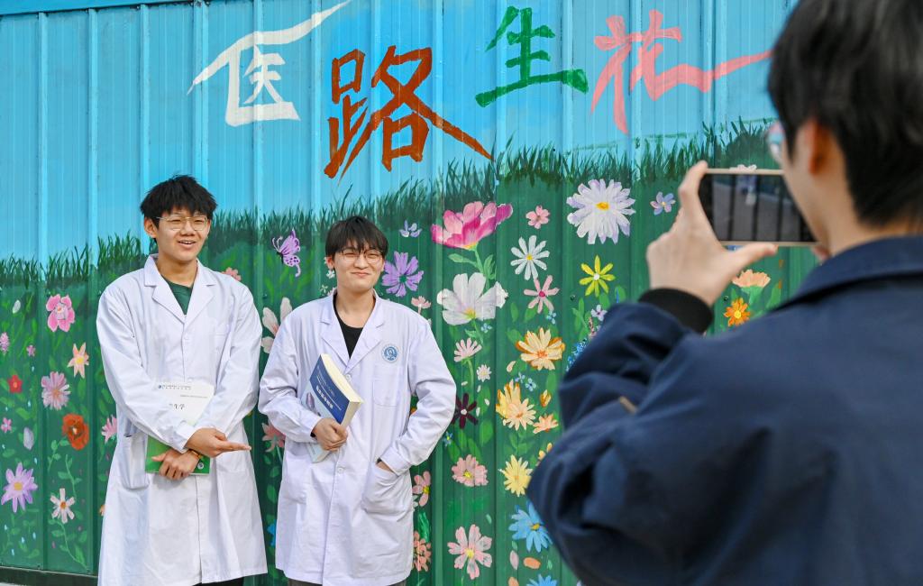 墙绘以“医路生花”“校园四季”为题,融入校园四季美景、建筑风格等校园文化元素和医学生梦想,以丰富的想象力、生动的形象和明丽的色彩精彩呈现,宛如一幅艺术长卷在校园中缓缓展开,不仅为校园增添了独特的艺术氛围,更承载了beat365学子对校园和医学的热爱。