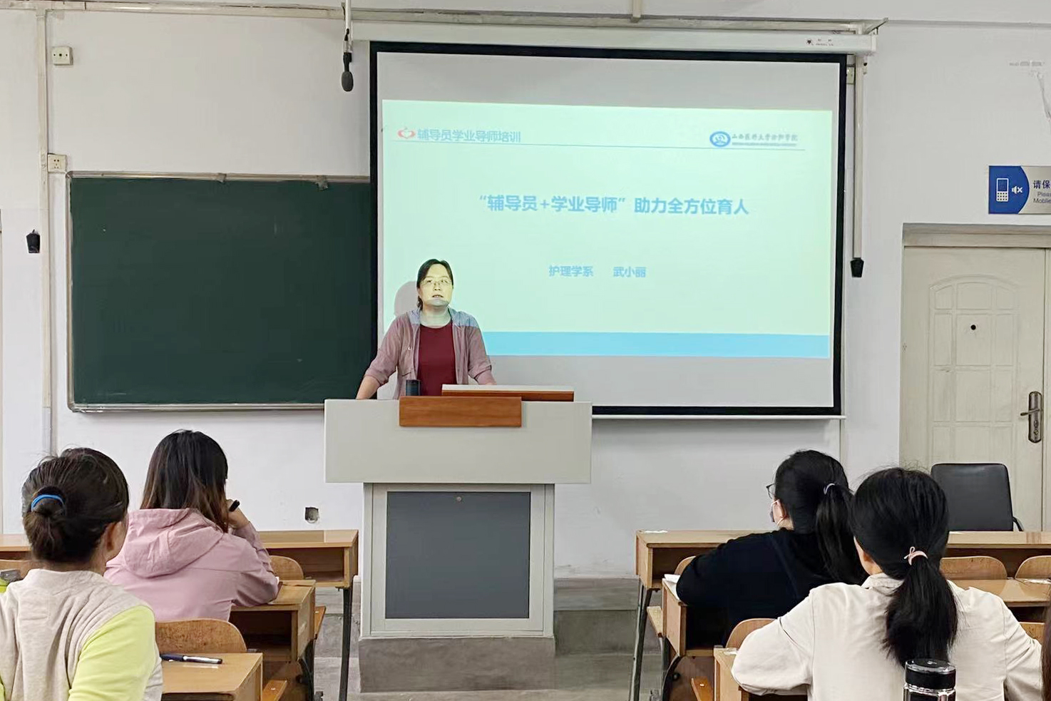 在专题讲座中,八位老师分别从宏观政策、人才培养目标、学生管理、团学活动、党建工作、心理育人、班级活动、辅导员实务八个专题高屋建瓴、深入浅出地进行讲解。武小丽书记以《辅导员+学业导师 助力全方位育人》为题,从辅导员与学业导师协同育人的必要性、二者的角色定位与职责划分,教育引导辅导员和学业导师用自己的人格魅力、学识魅力感染学生,做好新时代学生思想政治教育工作。李红梅主任从专业人才培养角度系统解读了学校《护理学人才培养方案》,强调了护理学系“厚基础、重人文、强技能”的育人特色。赵彦文副书记以《用心与坚持 让平凡的工作出彩》为题,告诫各位辅导员和学业导师要从“心”出发、浇花浇根、育人育心。康智芳老师以《校园文化润心田 春风化雨育青年》为题,从团学角度,重点介绍了“天使”十大系列活动,为做好护理学系共青团工作指明了方向。王娟老师以《夯基固本 铸魂赋能—强化党建引领促发展》为题,从党建角度分享了做好意识形态工作和党建工作的感受。郭志刚老师从心理学角度重点剖析了辅导员心理育人的方法策略。燕国华老师以《引领学生思想 陪伴学生成长》为题,讲述了一个个关于学生、关于爱的生动故事。成永红老师以《笃信笃行 在辅导员岗位上发光发热》为题,全方位讲述了精心准备第一课、系统规划新学期、迈开双脚“四走进”、推动落实谈心制、探索育人新机制的方法案例。