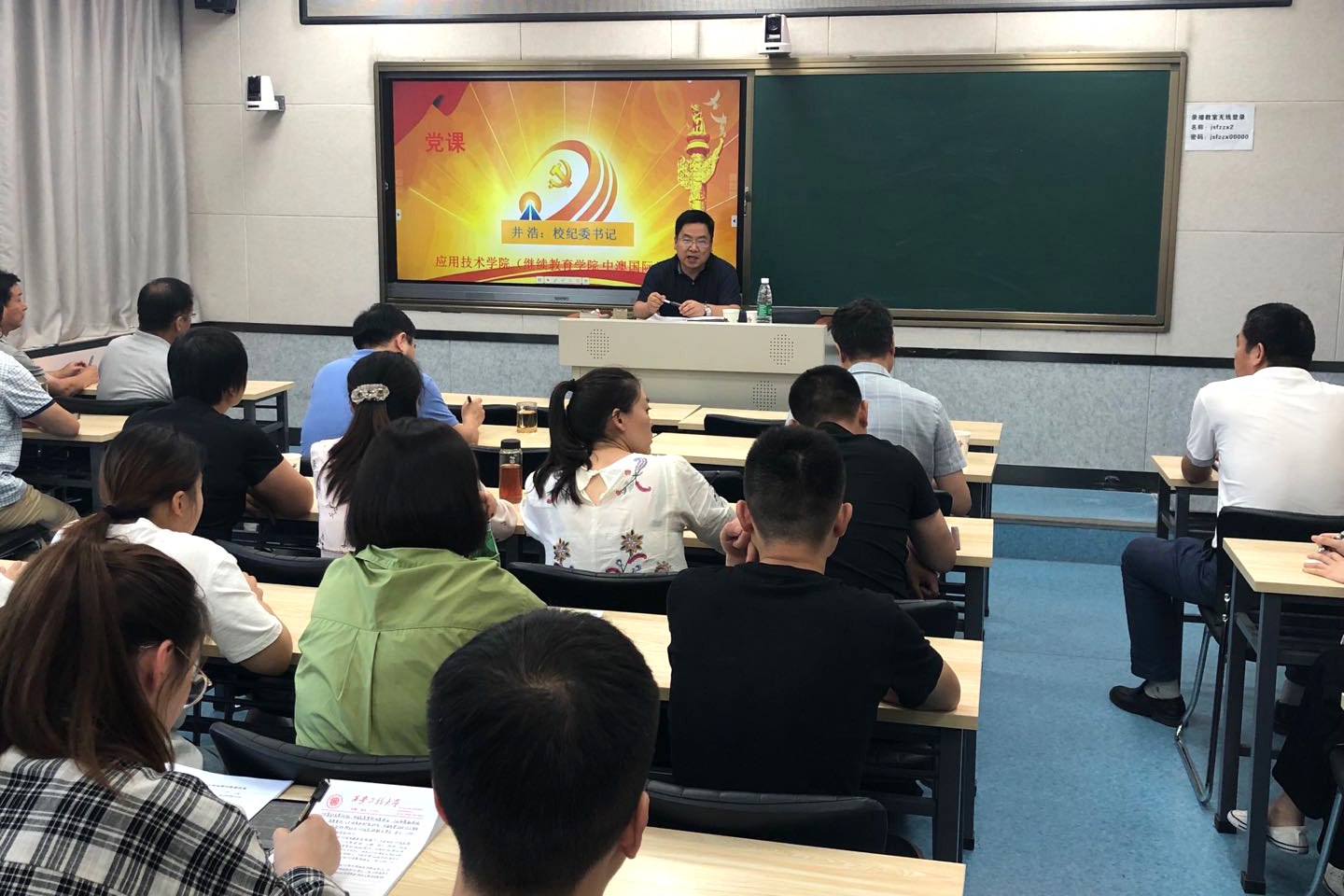 2019年7月10日下午,校纪委书记井浩在金花校区主楼411录播教室为应用技术学院党总支进行了专题党课讲座,学院全体党员和学生支部第五十六期积极分子参加了专题学习。会议由学院党总支书记王宇主持。井浩书记作了题为《不忘初心、从严治党、牢记使命、立德树人》的专题党课讲授。他分别从全面从严治党是贯穿十九大精神的主线、加强高校思想政治工作是牢记不忘初心的固本之举、严肃党内政治生活的重要意义以及推动高校全面从严治...