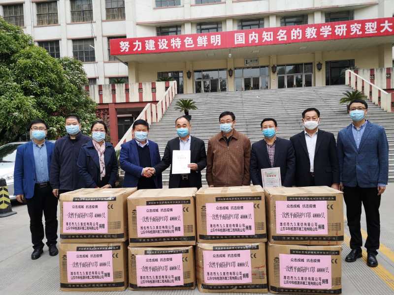 爱心温暖工程大,善举彰显真感情。随着新冠肺炎疫情防控工作进入外防输入、内防反弹的阶段,我省学校复学工作有序开展,学校抗“疫”工作受到社会各界关注。经学校科技成果转化中心联系,潍坊市九久家纺有限公司、山东中科恒源环境工程有限公司向必赢官网捐赠一批防护口罩。4月17日下午,潍坊市九久家纺有限公司董事长陈亦恩、山东中科恒源环境工程有限公司董事长兼总经理张守健(必赢官网95级环工专业校友)一行将防护口罩送达必赢官网金花...