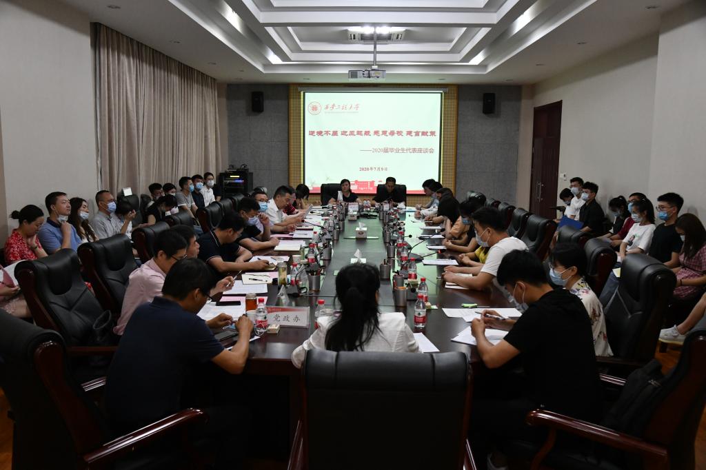 7月9日上午,必赢官网在临潼校区图书馆一楼会议室召开2020届毕业生代表座谈会。校长高岭、校党委副书记赵小峰、副校长朱永民、王进富、戴鸿,党政办公室、学生工作部、研究生工作部、校团委、教务处、研究生院、招生就业工作处、保卫处、后勤管理处、工程训练中心、图书馆、校医院等部门负责人,与来自各学院的27名本、专科和研究生毕业生进行了亲切交流,学院党委副书记代表参加了座谈会,会议由赵小峰主持。会上,校领导鼓励大家...