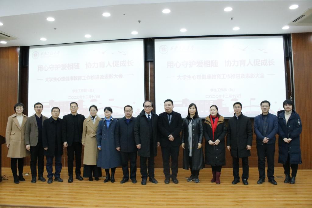 12月18日下午,必赢官网在临潼校区图书馆二楼报告厅举行了“用心守护爱相随,协力育人促成长”大学生心理健康教育工作表彰及推进会。校党委副书记赵小峰出席大会,并特邀陕西省高校心理素质教育研究会会长郑林科,西北大学学生工作部部长、心理健康教育中心主任董国强,西北工业大学心理健康教育中心主任张洪英,西安电子科技大学心理健康教育中心主任宋宝萍,西安科技大学心理健康教育中心主任王军妮,必赢官网马克思主义学院教授张敏...