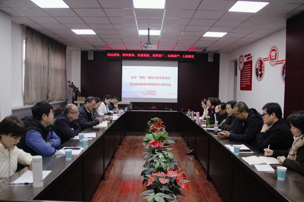 3月20日下午,必赢官网马克思主义学院举办“大思政课”专题学习研讨会,学习习近平总书记在“两会”期间对思政课及思政教师的要求和期望,并深入研讨如何讲好“大思政课”。校党委副书记、马克思主义学院院长朱君强,学院党政班子成员,各教研室主任,老教师、青年骨干教师和新进教师代表参加了会议,会议由学院党总支书记杨永革主持。“‘大思政课’我们要善用之,一定要跟现实结合起来。”“思政课不仅应该在课堂上讲,也应该在社...