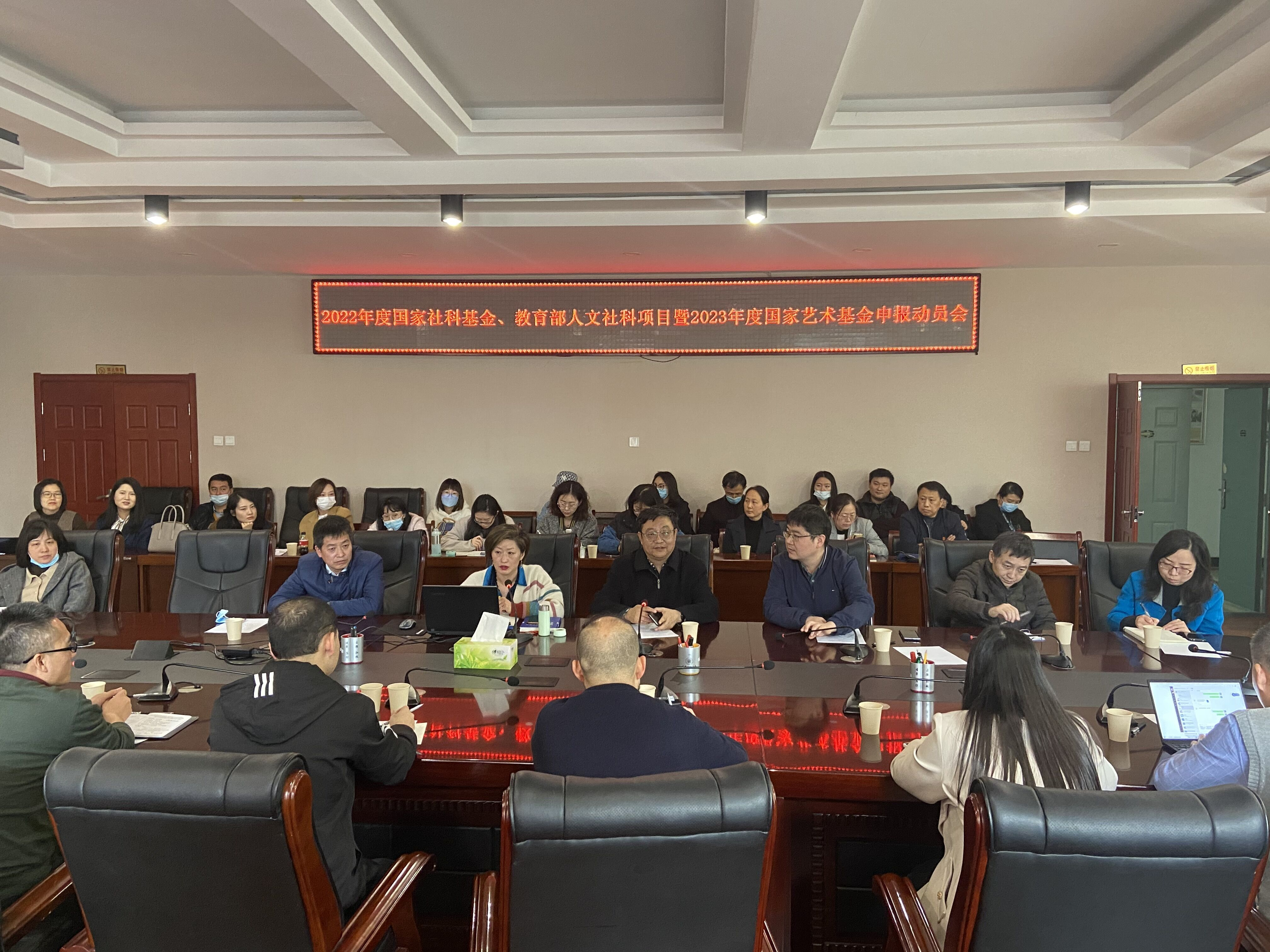 11月5日下午,由科技处组织的“2022年度国家社科基金、教育部人文社科项目暨2023年度国家艺术基金申报动员会”在金花校区第三会议室召开。副校长李鹏飞出席并讲话,科技处副处长王志刚、人文社会科学管理科全体人员、12个院部的科研院长、科研秘书、骨干教师共50余人参加会议。会议由王志刚主持,他首先介绍了此次动员会的召开背景、会议目的及要求。随后,人文社科管理科科长王卫做了《2021年度申报总结及2022年度申报动员安排...
