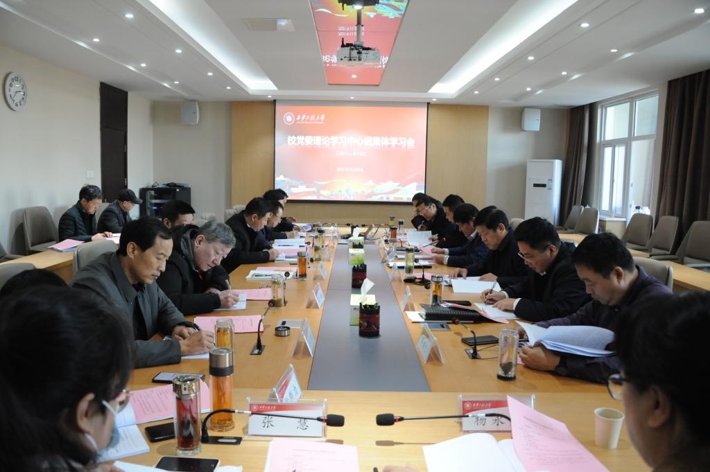2021年11月23日下午,校党委理论学习中心组进行第13次集体学习,校党委书记马万清主持会议。马万清领学了中国共产党第十九届中央委员会第六次全体会议精神;党委副书记、校长王海燕领学了《中共中央国务院<关于新时代加强和改进思想政治工作的意见>》;党委副书记井浩传达了省委教育工委、省教育厅《关于进一步推进“学好延安精神、西迁精神,办好人民满意教育”实践活动走深走实的通知》要求;校党委副书记、纪委书记、监察专...