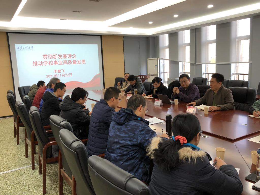 2021年11月22日,副校长李鹏飞到理学院讲授了题为《贯彻新发展理念,推动学校事业高质量发展》的专题党课。学院中心组成员、各党支部书记、系部和实验中心负责人参加。李鹏飞结合自身学习讲解了新发展理念的概念和发展,讲述我们建党百年以来取得的光辉成就,团结带领全国各族人民开启向第二个百年奋斗目标进军的新征程。通过载人航天、探月工程、火星探测等我国航天事业的快速发展,纺织行业升级转型、产业链的发展、污染治理...