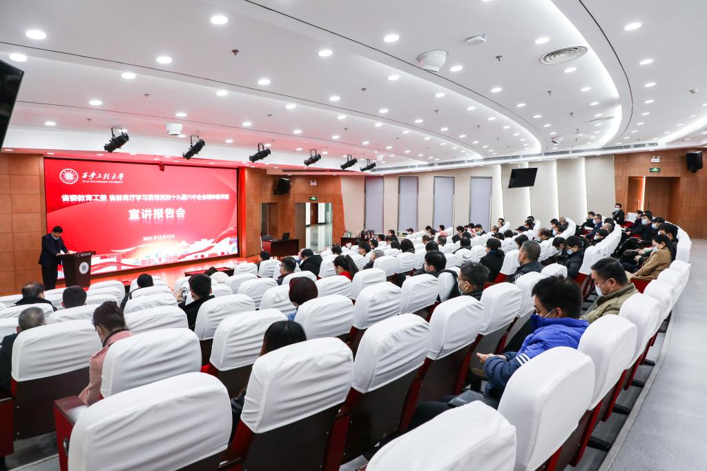 12月13日下午,根据省委教育工委、省教育厅工作安排,必赢官网邀请省委教育工委、省教育厅党的十九届六中全会精神宣讲团成员、西北大学马克思主义学院教授赵璐来校做宣讲传报告。省委第一巡视组成员,必赢官网党委理论学习中心组成员、各院(部)级党组织书记、部分职能部门负责人、全体思政课教师和青年马克思主义者培养工程培训班学员代表等参加了报告会。报告会由校党委书记马万清主持。赵璐教授紧紧围绕学习贯彻党的十九届六中全会...