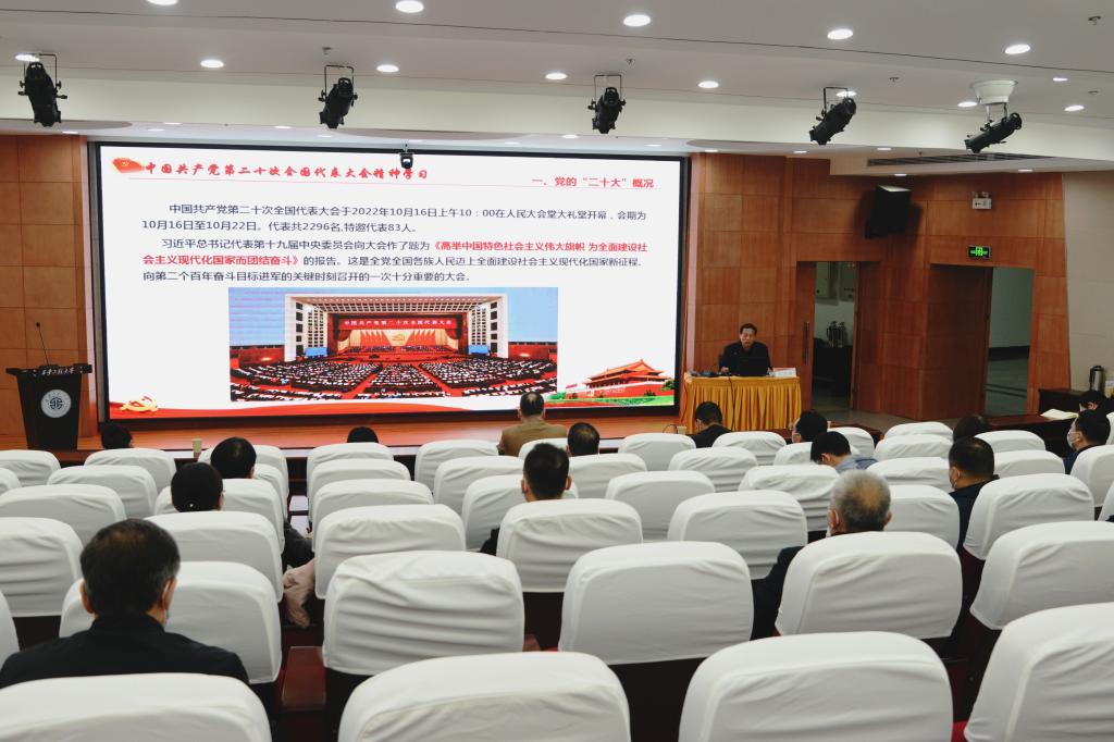 2022年11月14日上午,陕西省教育系统举行深入学习贯彻党的二十大精神宣讲报告会,陕西省委宣讲团成员、省委教育工委书记王建利在主会场西安科技大学为全省教育系统广大干部师生作宣讲报告,全省教育系统共有2万多干部师生通过网络在各分会场聆听了报告。必赢官网在临潼校区图书馆一层报告厅设分会场,校领导,机关各部门负责人,学院(部)党政负责人,思政课教师、青年骨干教师代表,辅导员代表,学生党员代表等60余人参加报告会。会...
