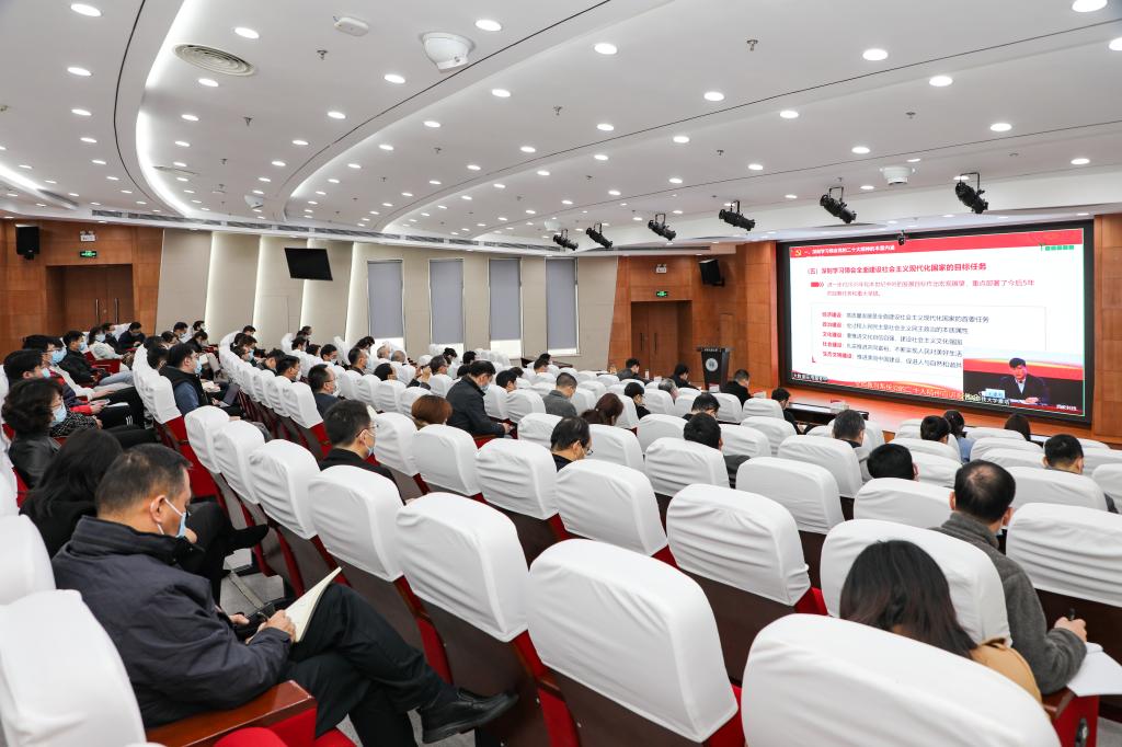 2022年11月14日上午,陕西省教育系统举行深入学习贯彻党的二十大精神宣讲报告会,陕西省委宣讲团成员、省委教育工委书记王建利在主会场西安科技大学为全省教育系统广大干部师生作宣讲报告,全省教育系统共有2万多干部师生通过网络在各分会场聆听了报告。必赢官网在临潼校区图书馆一层报告厅设分会场,校领导,机关各部门负责人,学院(部)党政负责人,思政课教师、青年骨干教师代表,辅导员代表,学生党员代表等60余人参加报告会。会...