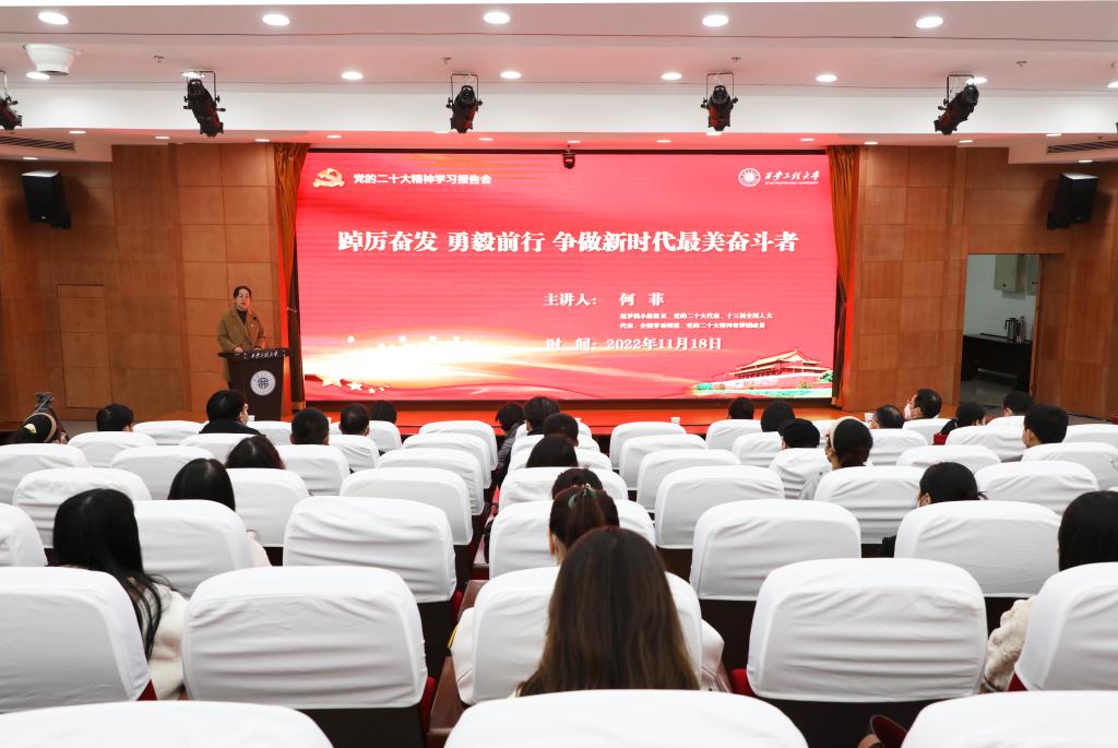 2022年11月18日,必赢官网在临潼校区图书馆一层报告厅举办学习党的二十大精神报告会,党的二十大代表、全国劳动模范、赵梦桃小组第十三任组长何菲应邀来校作报告。陕西省纺织职工思想政治工作研究会会长侯代会出席会议。校党委宣传部常务副部长王鸣媛,马克思主义学院党委书记杨永革,纺织科学与工程学院党委书记李伟,“梦桃精神 代代相传”全国纺织思想政治教育研究基地全体成员,马克思主义学院各党支部书记、学生代表参加会议,...