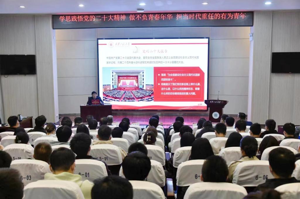 不负好春光,孕育新希望。2022年3月16日,校长王海燕在金花校区以“学思践悟党的二十大精神 做不负青春年华 担当时代重任的有为青年”为主题,采取线上线下相结合方式为青年大学生讲授2023年春季学期“开学第一课”,校党委副书记井浩出席活动,活动由校团委书记刘俊富主持。王海燕深刻剖析了党的二十大精神的思想精髓和核心要义,对报告主题进行了深入解读,重点介绍了实施科教兴国战略、强化现代化建设人才支撑等内容,并介绍...