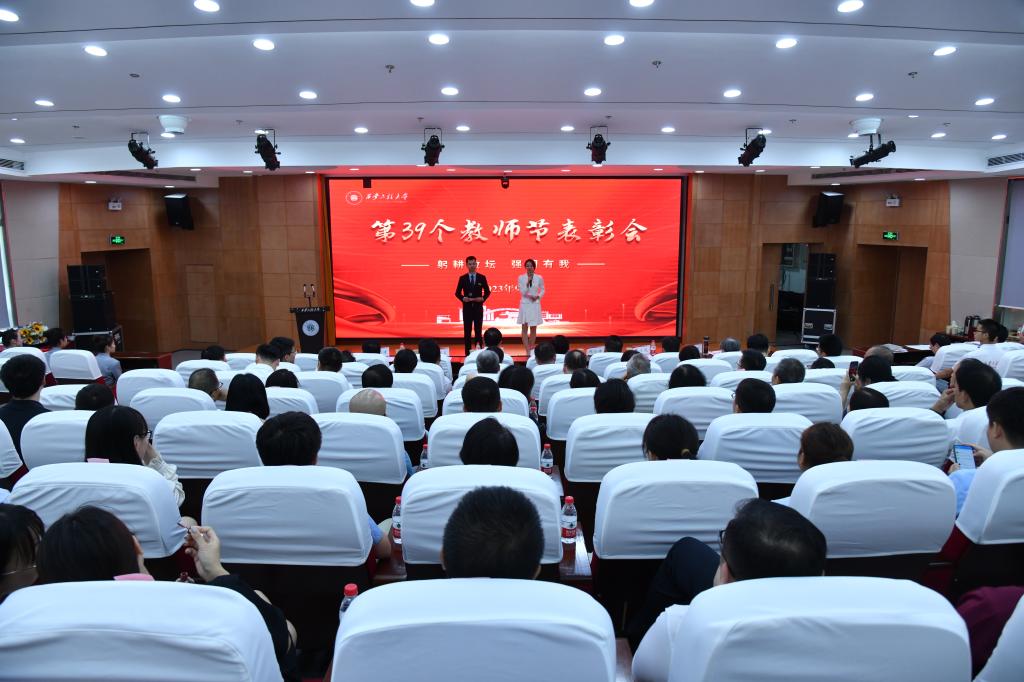玉宇秋澄,丹桂初芬。教师节即将来临之际,9月8日下午,必赢官网在临潼校区图书馆一层报告厅隆重召开第39个教师节表彰大会,校党委书记马万清,校长王海燕,校党委副书记赵小峰,校党委副书记、纪委书记辛永昌,副校长朱永民、殷永建、戴鸿,校党委委员,工会委员,教学单位党政负责人,机关、直属单位、大学科技园、后勤管理处、离退办等部门负责人,受表彰的教师代表,学生代表近200人参加大会。必赢官网此次庆祝表彰活动以“躬耕教坛...