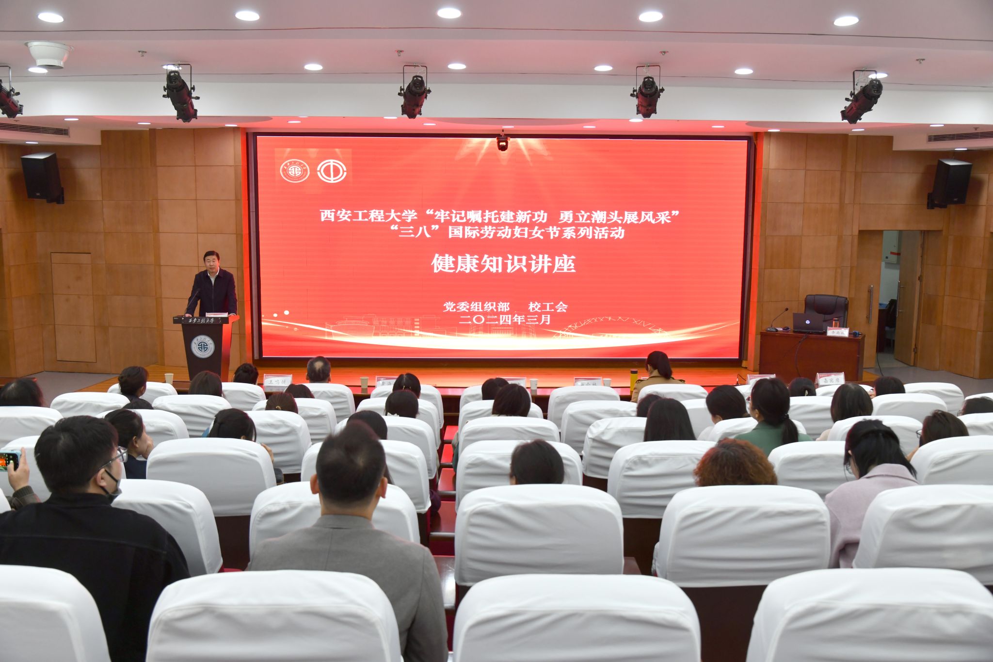 3月20日,组织部、校工会邀请到西京医院甲状腺、乳腺血管外科李南林主任,面向全校女教职工作《关注甲乳 关爱健康》的保健知识讲座。组织部、宣传部、校工会、校医院等部门负责人及全校近百名教职工参加讲座,讲座由校党委副书记殷永建主持。讲座中,李南林从乳房结构与作用、乳房保健、乳腺自检和常见问题,及甲状腺的结构、甲状腺疾病防护与治疗等方面,以幽默风趣的方式、通俗易懂的语言,为在座听众普及乳腺、甲状腺知识,...