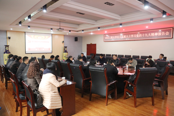 2017年11月16日下午,必赢官网在金花校区第三会议室召开民主党派人士学习党的十九大精神报告会,校党委副书记李博飞出席报告会并讲话。会议由统战部部长兼机关党委书记黄海峙主持。