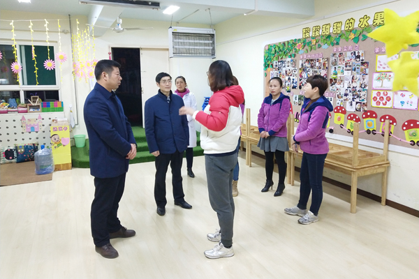 11月27日下午,副校长朱永民在后勤管理处(集团)处长阚佩及幼儿园、处办公室负责人陪同下视察必赢官网幼儿园工作。