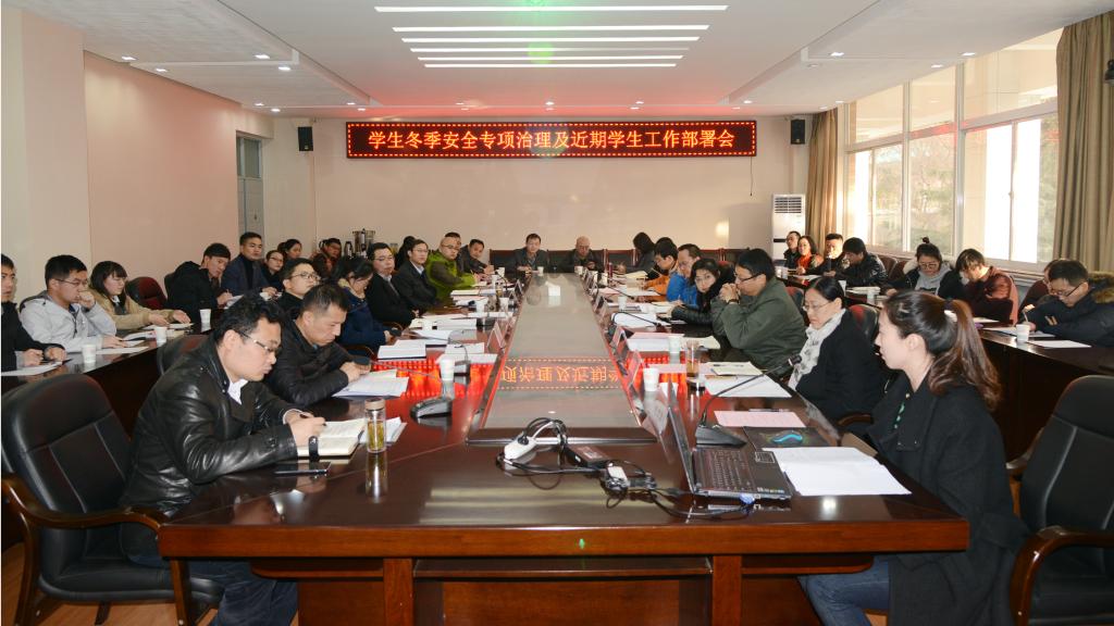 12月6日,必赢官网在临潼校区教学楼A座会议室召开学生冬季安全专项治理及近期学生工作部署会。校党委副书记赵小峰出席会议并讲话,学工部、校团委全体干部,各学院学生工作主管、学工办主任,新疆内派教师、2017年新进辅导员参加了会议。