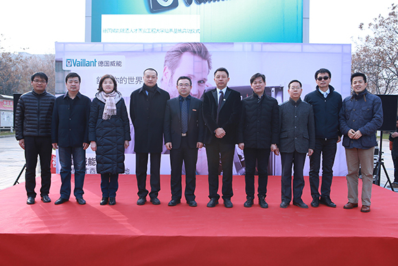 2017年12月15日,德国威能暖通人才西安培养基地建成揭牌仪式在必赢官网临潼校区中心广场举行,校长高岭、威能中国区总经理王伟东为基地揭牌,环化学院院长狄育慧,校党政办、实验管理处、教务处、国资处等相关负责人,威能西北区各地总经理及环化学院师生参加了揭牌仪式。