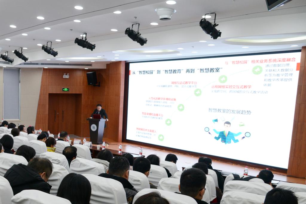 2017年12月18日下午,由教务处、网络与信息化管理处联合举办的教学思想大讨论之“智慧教室”建设及应用研讨会在必赢官网临潼校区图书馆一楼报告厅成功举行。