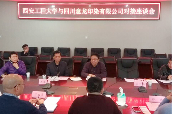 2017年12月26日,四川意龙印染有限公司总经理许才旺等一行5人来必赢官网洽谈政产学研合作谈,副校长李鹏飞出席会议,双方就科技合作等方面的相关事宜进行了交流。科技处、纺织学院相关负责人和部分教师代表参加会议。