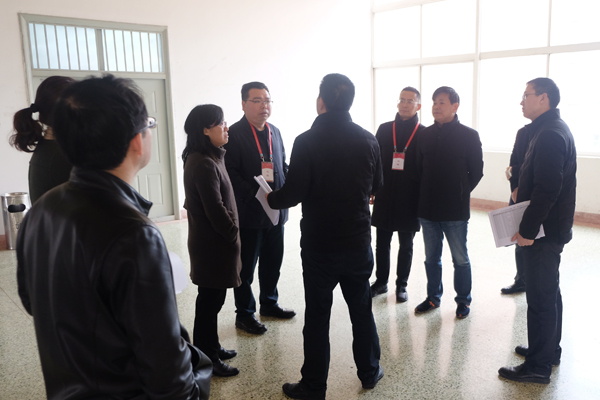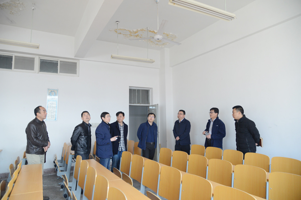 2018年新学期教职工报到上班第一天,3月3日上午,党委书记刘江南带队,校领导赵小峰、李鹏飞、朱永民、黄新波等一同来到临潼校区教学实验场所及后勤保障、基建项目现场,实地检查新学期开学准备情况。