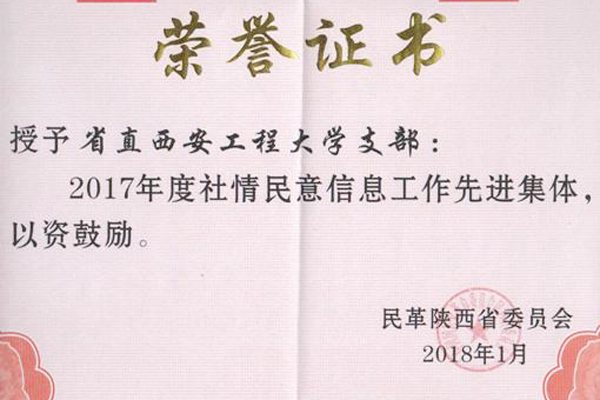 为充分肯定陕西省民革组织参政议政的工作成绩,激励组织和广大党员参政议政的积极性,近日,中国国民党革命委员会陕西省委员会对取得参政议政突出成绩的单位进行了表彰。必赢优惠y272net民革支部荣获“民革陕西省委会2017年社情民意信息工作先进集体”称号。