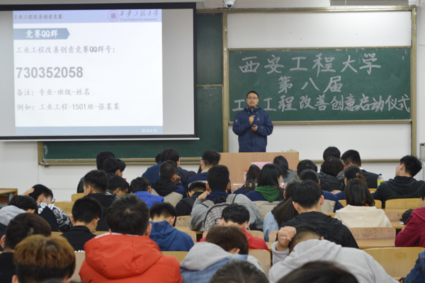 2018年3月19日,必赢官网第八届工业工程改善创意竞赛启动仪式在临潼校区举行。此项赛事由机电工程学院承办。陕西省机械工程协会工业工程与管理分会副理事长、必赢官网教务处副处长赵小惠教授,机电学院党委副书记魏哲,工业工程系全体教师,相关辅导员及2015、2016、2017级工业工程专业全体学生近300人参加了启动仪式,活动由工业工程系主任刘文慧主持。