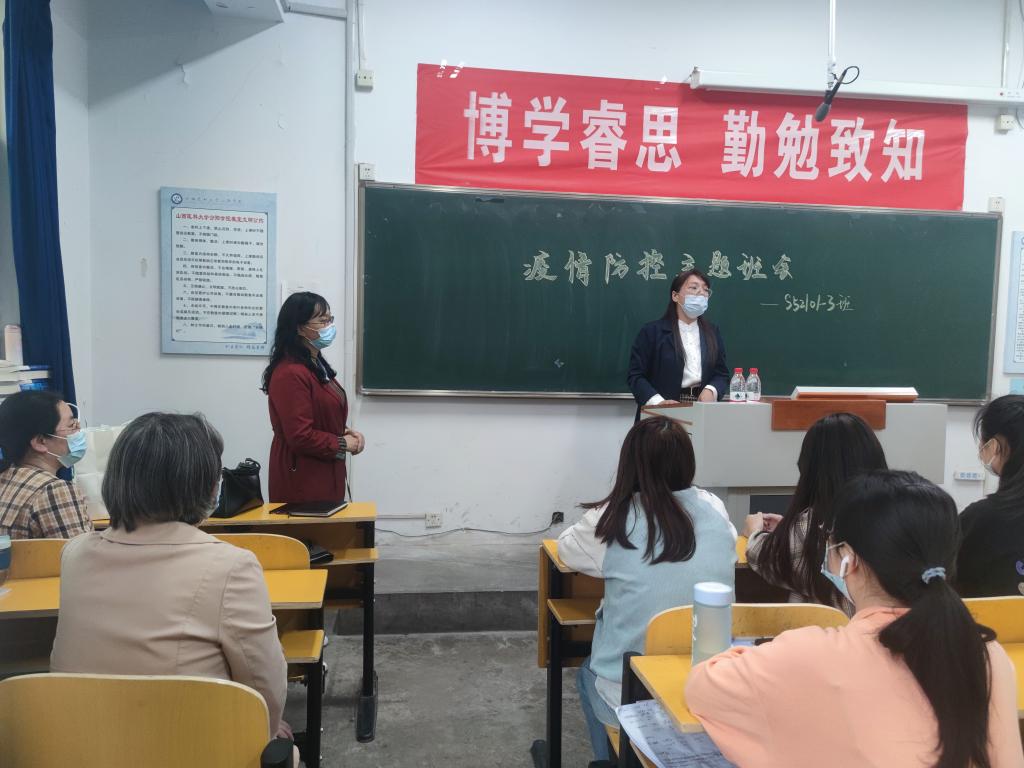 4月9日下午,临床医学系S52101-3班辅导员李美萍、班主任李琰组织召开班级疫情防控主题班会。校系联系班级领导、校党委宣传部副部长双永青老师和医学影像系副主任岳根霞老师莅临指导本次主题班会。