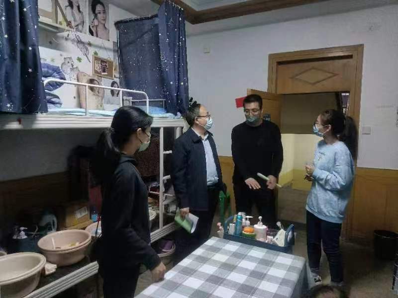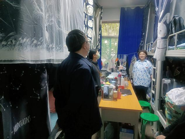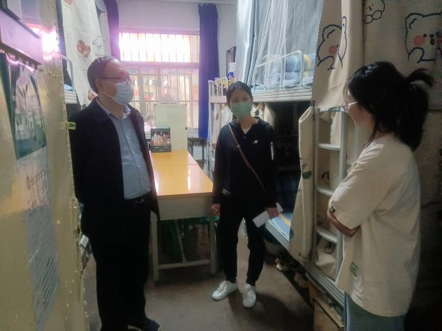 自疫情发生以来,宿舍作为同学们重要的学习和生活场所,成为学校最为关心的焦点,为进一步将疫情防控工作落到实处,加强学生疫情防控指导,关注学生身心健康,4月29日,基础医学部62120-28班校联系领导图科教党总支书记、现代教育技术中心主任康崇垚、系部联系老师穆志杰,在班主任史欣兴老师和辅导员张晓丽老师的陪同下深入班级学生宿舍走访慰问。
