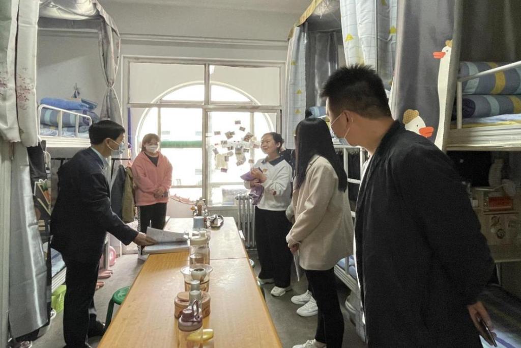 汾清杏香满西河,玉兰醉美邂汾院。为积极贯彻落实上级和学校校疫情防控的各项方针政策和班级三级包联制度,筑牢疫情防控安全防线,4月29日下午4时,62129-35班校级联系领导教务处副处长陈利荣,在班主任李丹、辅导员李小龙的陪同下,深入4号学生公寓走访关心了解学生思想动态、学习生活和疫情防控措施落实情况。