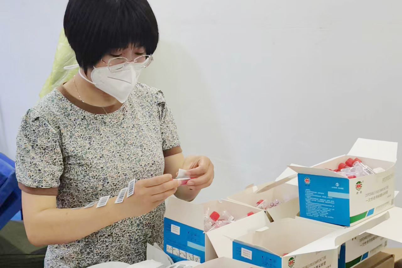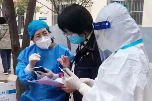 核酸扫码人员赵成瑞老师是个典型的代表,她年龄较大,要代课,同时还是科技中心研究生管理办公室主任。遇到核酸采集有课的时候总是提前调课,还经常向核酸采集总调度韩林梅主动请战:“要是人员调不过来,只要我有时间就可以排我”。在面对抗原检测复杂疑难问题,需要复测抗体核酸时,核酸检测人员韩文萍和于波老师随叫随到,不抱怨、不推诿,迎难而上,全副武装,圆满完成了核酸采样任务。在全员核酸人员安排很紧张的时候,基础医学部的武莉老师、临床医学系的王君老师主动请缨,自觉加入到核酸检测的志愿者队伍中来……