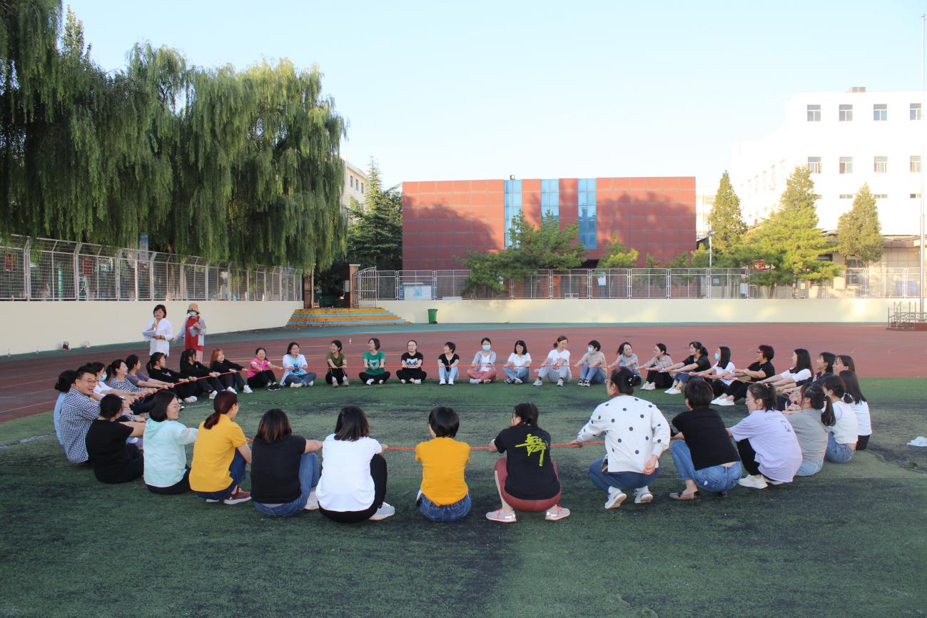 凝聚产生力量,团结诞生希望。9月7日下午,伴随着秋日温润柔和的阳光,护理学系全体教职工在运动场举办了“凝心聚力、熔炼团队”为主题的体验式团队建设活动,活动由系分工会委员燕国华、工会会员秦玉立共同主持。团建活动在主持人生动的开场白下拉开了帷幕,活动从热身游戏“公鸡下蛋”开始,在欢声笑语中锻炼了身体,释放了压力。随后进行了“光盘拔河、东南西北跑、珠行万里、同心鼓、生命动力圈”五个团队拓展项目。主持人从目标分解、个性到共性的协作从而转向平台的努力等方面进行了讲解,各组队员激情饱满、热情洋溢、配合默契,努力为自己的队伍赢取胜利。虽然有竞争、有挑战,但更有乐趣,加油声、喝彩声像股热浪,回荡在运动场,久久不能停息。尤其是最后的生命动力圈项目,全体教师共同舞动连接在一起的绳子,舞动着团队之环,现场激情澎湃。许多人在一起可以做出单独一个人无法做出的事业,智慧、双手、力量结合在一起,几乎是万能的。