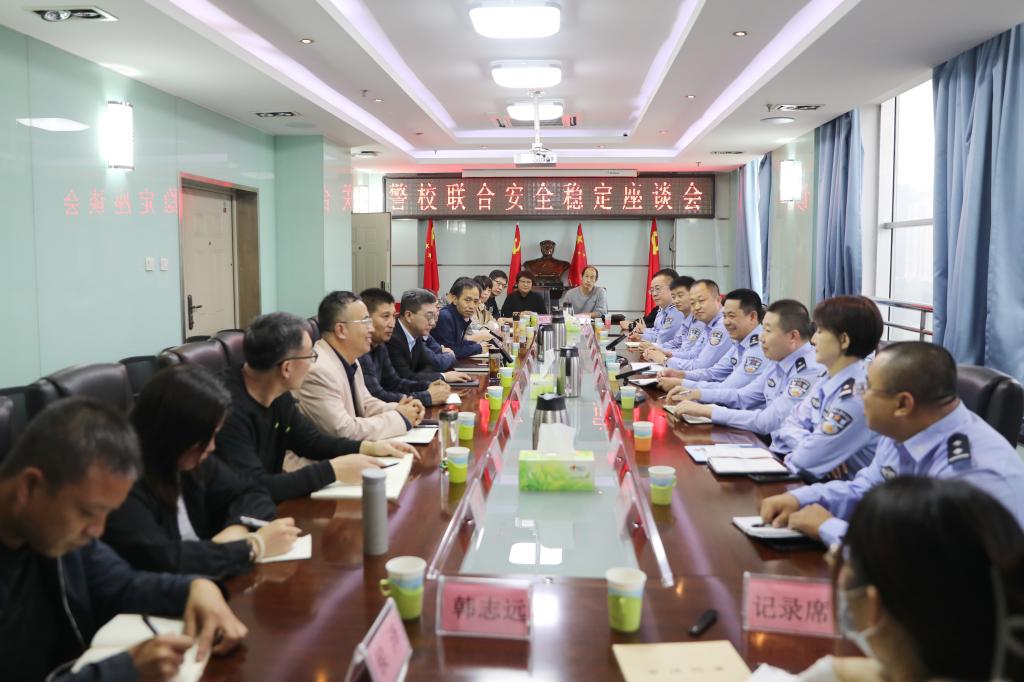 10月1日下午,国庆节期间,党委副书记王伟召集,党委委员、副院长李荣江主持召开了警校联合安全稳定座谈会。党委委员、组织部长李峥,党委委员、宣传部长樊瑞晶及beat365相关职能部门负责人、系部书记和副书记,汾阳市公安局副局长潘杰,国保大队、禁毒大队、内保大队、反诈中心、综合保障中心、宣教科、巡特警大队和辰北派出所负责人参加了座谈会。