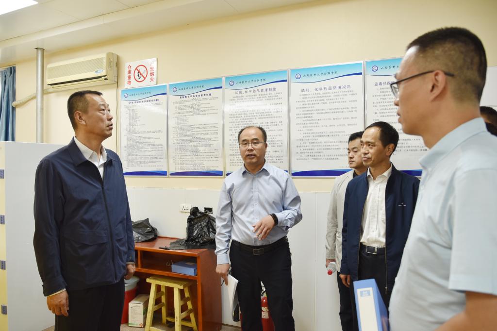 为深入贯彻落实习近平总书记关于安全生产重要指示精神,切实做好学校安全和常态化疫情防控工作,及时防范化解各类风险隐患,确保校园安全稳定,9月30日下午,校党委副书记王伟,党委委员、副院长李荣江带队,武装部(保卫处)、学生工作部(处)、教务处、后勤保障处、基建处、团委等相关负责人,深入学生食堂、学生公寓、校园超市、实验室、危化品储存室、隔离室等重点区域就校舍安全、食品安全、消防安全、实验室安全、消杀工作、校园安防以及学生反映的问题等开展了安全大检查,全面排查整治安全隐患。