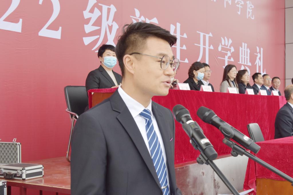 教师代表、护理学系仲朝阳作了发言,表达了对同学们谆谆教诲和殷切期望。老生代表、2019级临床医学专业丁杬铮同学作了发言,与大家分享了自身的学习和生活经验。新生代表、2022级护理专业张晶同学代表新生作了发言,抒发了对美好未来的憧憬。