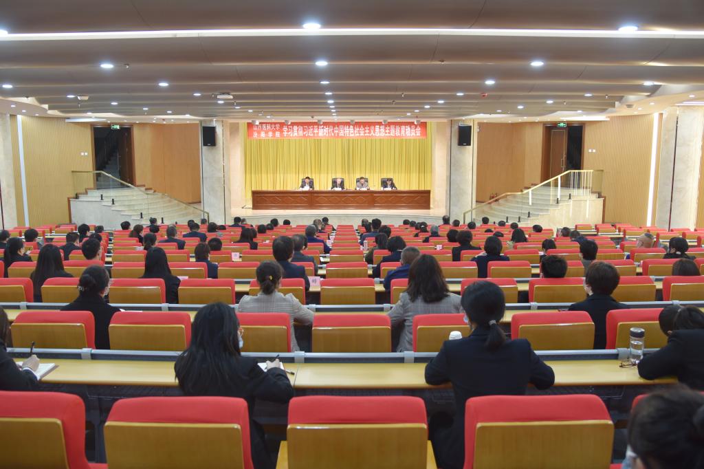 会上,闫敬来书记作了题为《高标准 高质量开展好主题教育 凝聚起学校事业发展的磅礴力量》的讲话,从四个方面作了动员部署:一要深刻认识、准确把握开展主题教育的重大意义。开展主题教育,对于推动全党更加自觉深刻领悟“两个确立”的决定性意义,更加自觉增强“四个意识”、坚定“四个自信”、做到“两个维护”,始终在思想上政治上行动上同以习近平同志为核心的党中央保持高度一致,具有十分重大的意义;对于推进党的自我革命、时刻保持解决大党独有难题的清醒和坚定,始终与人民同心,保持党的先进性和纯洁性,使全党更加紧密地团结在以习近平同志为核心的党中央周围,完成党在新时代新征程的使命任务,具有十分重大的意义;对于完整准确全面贯彻新发展理念、服务和融入新发展格局、推动高质量发展,推进中国式现代化山西实践,奋力完成“两个基本实现”奋斗目标,具有十分重大的意义;对于推进学校第四次党代会提出的“1359”行动方案,建设具有区域影响力、特色鲜明、高水平的本科医学院校,具有十分重大的意义。二要精心组织、全面落实主题教育的安排部署。要牢牢把握主题教育的总要求:学思想、强党性、重实践、建新功;紧紧锚定主题教育的根本任务:坚持学思用贯通、知信行统一,把习近平新时代中国特色社会主义思想转化为坚定理想、锤炼党性、指导实践、推动工作的强大力量,使全党始终保持统一的思想、坚定的意志、协调的行动、强大的战斗力,努力在以学铸魂、以学增智、以学正风、以学促干方面取得实实在在的成效;要不折不扣落实主题教育的具体目标:凝心铸魂筑牢根本,锤炼品格强化忠诚,实干担当促进发展,践行宗旨为民造福,廉洁奉公树立新风。三要学用结合,着力推动主题教育走深走实。要加强理论学习,持续学深悟透、深入交流研讨,进一步凝心铸魂强化忠诚;要深入调查研究,坚持问题导向、坚持实事求是、坚持学以致用、坚持成果转化,进一步转变作风提高本领;要全面落实目标任务,坚持以习近平新时代中国特色社会主义思想为指导,把党的二十大精神贯彻落实到学校改革发展的各方面全过程,做到两手抓、两促进,进一步推动学校高质量发展;要深刻检视问题,对标标准找差距、深刻检视挖根源、扑下身子抓整治,进一步查摆不足改进提高;要建章立制,强化制度执行,确保常态长效,进一步巩固深化主题教育成果。四要切实加强组织领导、确保主题教育取得实效。要统一思想、端正态度、求真务实,认认真真、踏踏实实积极参与主题教育;要严明纪律要求,力戒形式主义、官僚主义,坚持理论联系实际、坚持调查研究、深入检视问题、逐一整改落实;要明确责任分工,坚持以上率下、狠抓落实。学校各级党组织和党员领导干部要履职尽责,统筹负责好本单位本部门主题教育工作的谋划部署、推进落实。坚持围绕中心、服务大局,把开展主题教育与完成学校各项工作任务结合起来,使党员干部焕发出来的热情转化为攻坚克难、干事创业的实际成果,推进学校事业发展不断取得新突破、新成就。