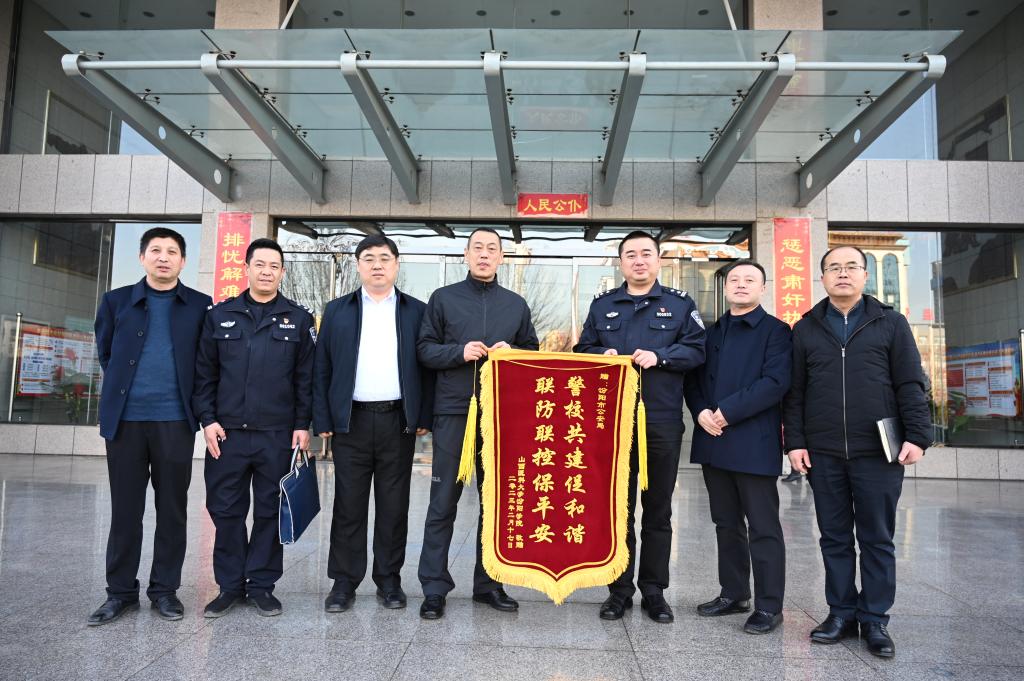 党委副书记王伟代表beat365为汾阳市公安局赠送了“警校共建促和谐、联防联控保平安”的锦旗。