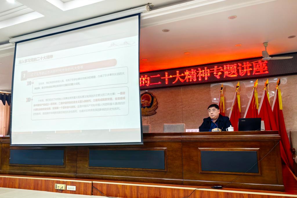 樊瑞晶部长以《深入学习党的二十大精神》为题,从“党的二十大的大会主题”、“过去五年的工作和新时代十年的伟大变革”、“马克思主义中国化时代化”、“中国式现代化”,“关于全面建设社会主义现代化国家的新部署新要求”及“坚定不移全面从严治党,深入推进新时代党的建设新的伟大工程”六个方面作了详细深入地讲解。
